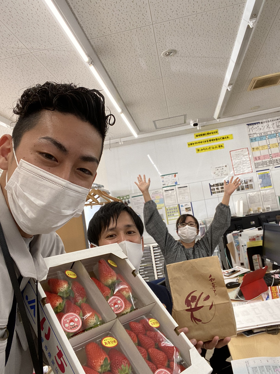 4月に入社する内定者の中岡さんから、イチゴを貰いました!