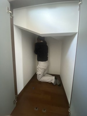 これは階段下収納のコーキングをしているところです♪