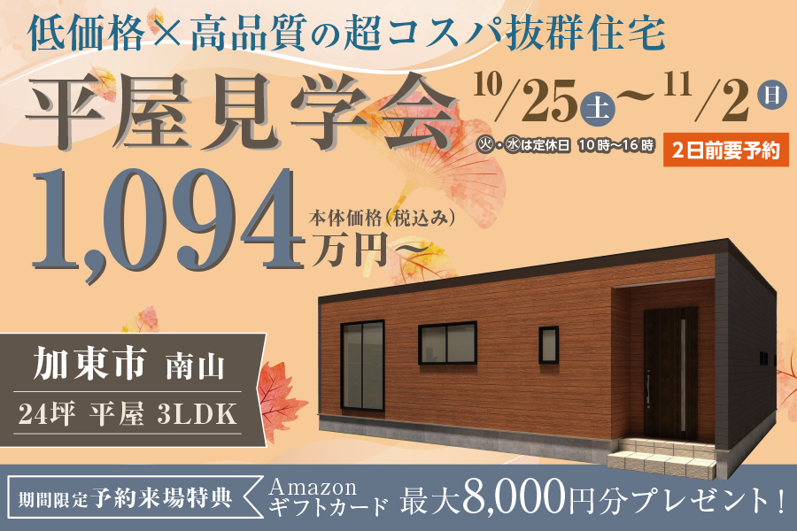 低価格×高品質の超コスパ抜群平屋が見れる見学会開催します!