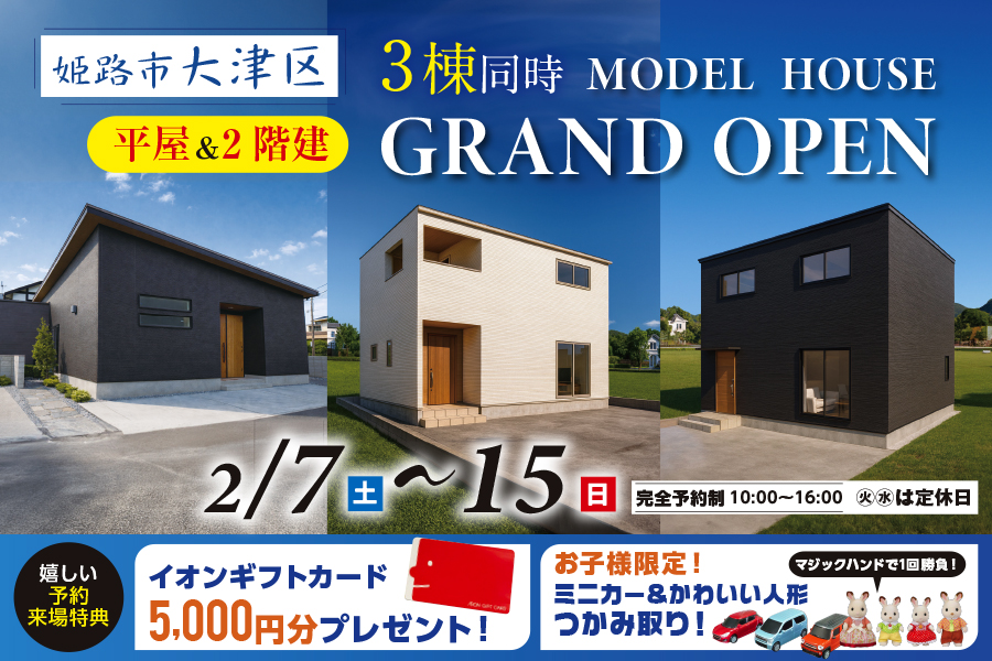 姫路市大津区で平屋と2階建てが3棟同時に見れる見学会開催します !