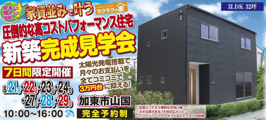 【加東市】家賃並みで叶う新築完成見学会