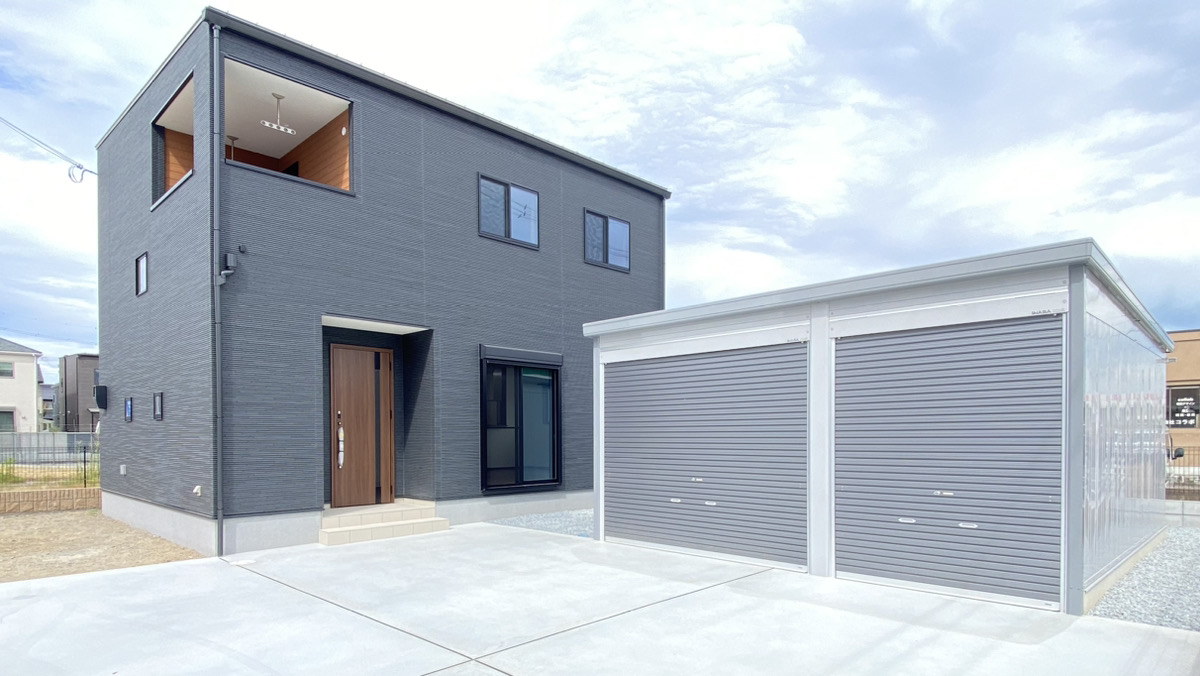 このように上下でカラーを分ける場合は濃い色を上に持ってくるのか、薄い色を上にもっていくのかでかなり印象も変わります。画像のように上に濃い色、下に薄い色だとモダンでおしゃれな印象になります。一方、上に薄い色、下に濃い色だと安定感のある印象になり、家が大きく見えます。2階建てもいろんなアクセントカラーの入れ方があります。好みの外壁カラー、イメージを見つけてみてください。