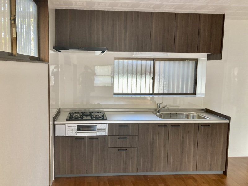 キッチン・お風呂・洗面化粧台を入れ替えました。キッチンは後ろを白のパネルにすることでより明るくなりました。調理スペースも設けていますし、収納も豊富なキッチンとなっています。使い方も考えてリフォームしました。