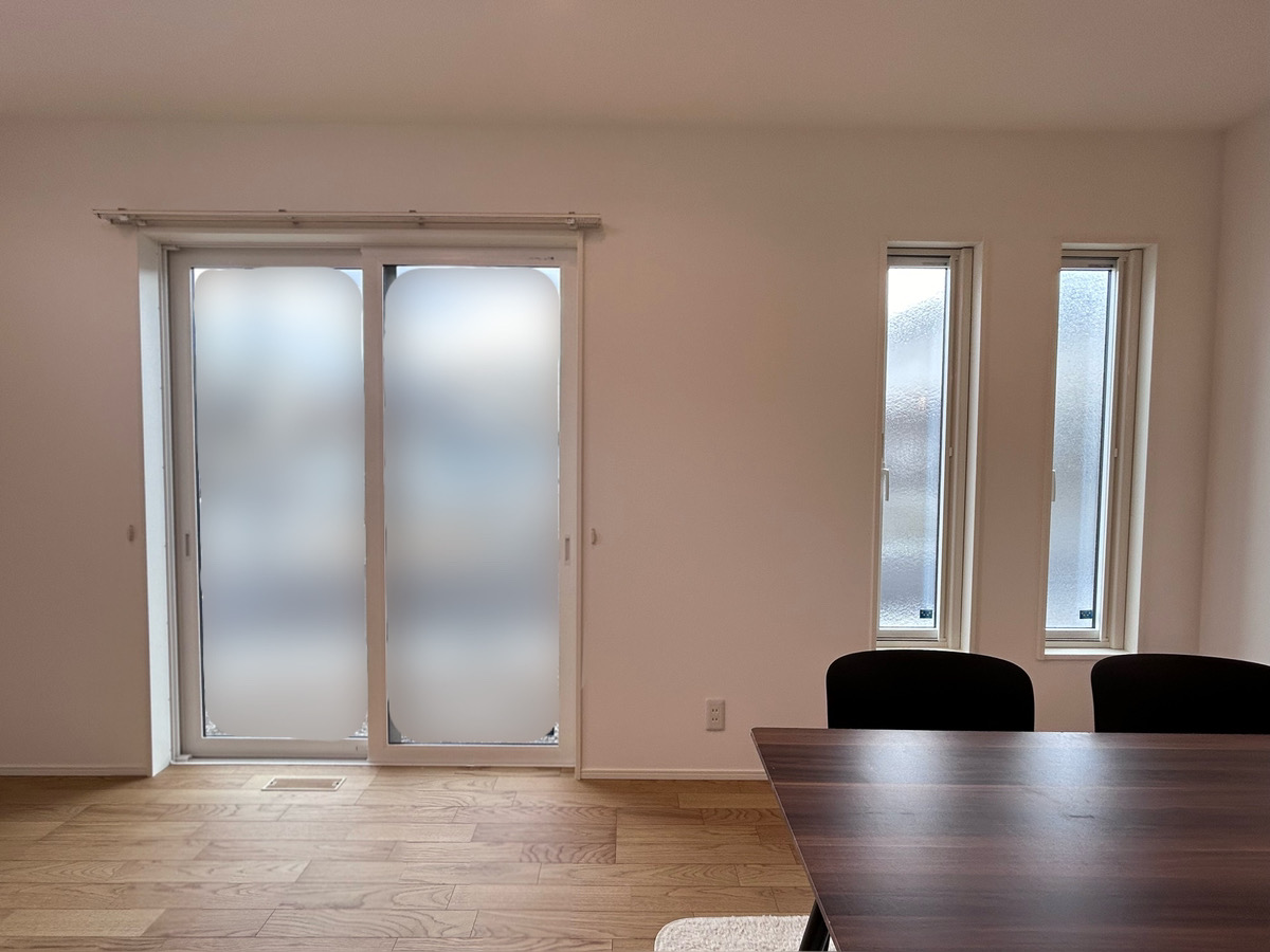 窓が多く設置され、すべてYKKのAPW330を使用しています。南側には掃き出し窓と縦長の窓を2つ設置しています。しっかりと光を入れることができます。そしてこちらの東面には天井近くにFIX窓を設置しました。東面に窓を持ってきたことで朝東の光を取り入れられるようになります。