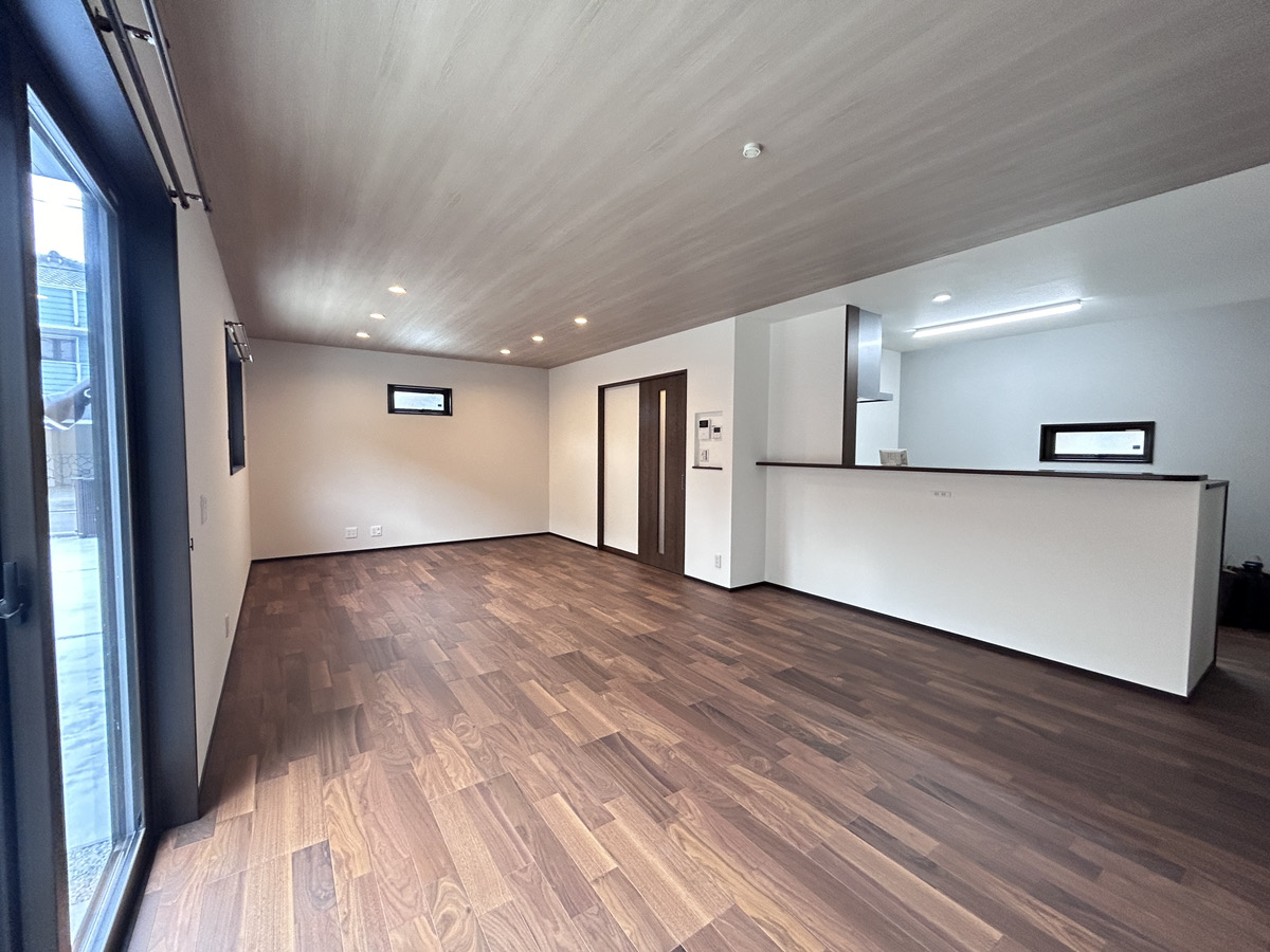 LDKでは、天井のクロスの色をキッチンとダイニング・リビングエリアで異ならせることで、空間を効果的に区切ることができます。また、木目の向きを長手方向に配置することで、部屋をより広く見せることも可能です。部屋のサイズを拡張する際には、色や柄を活用する方法も考慮することをおすすめします。