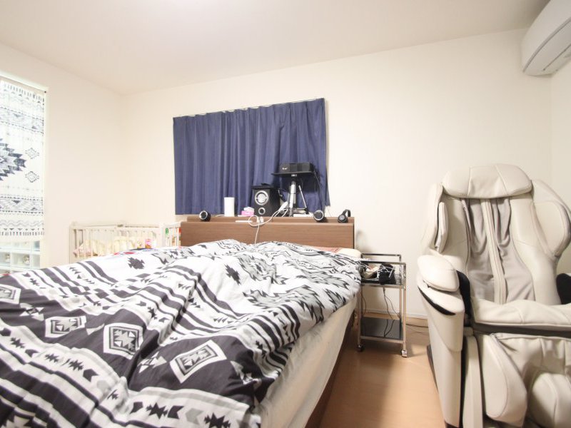 一日の疲れを癒してくれる寝室はダブルベッドとマッサージチェアーを1台ずつ置けるくらいの十分な広さです。