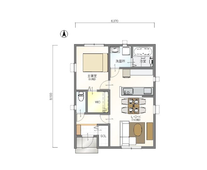 玄関→SCL(シューズクローク)→LDKという、スムーズな動線が魅力的です。