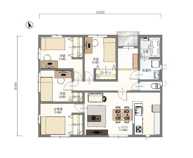 各部屋へ行くのにリビングを通る間取りにすることもでき、家族が自然と顔を合わせる機会が増えるため、コミュニケーションがとりやすいです。